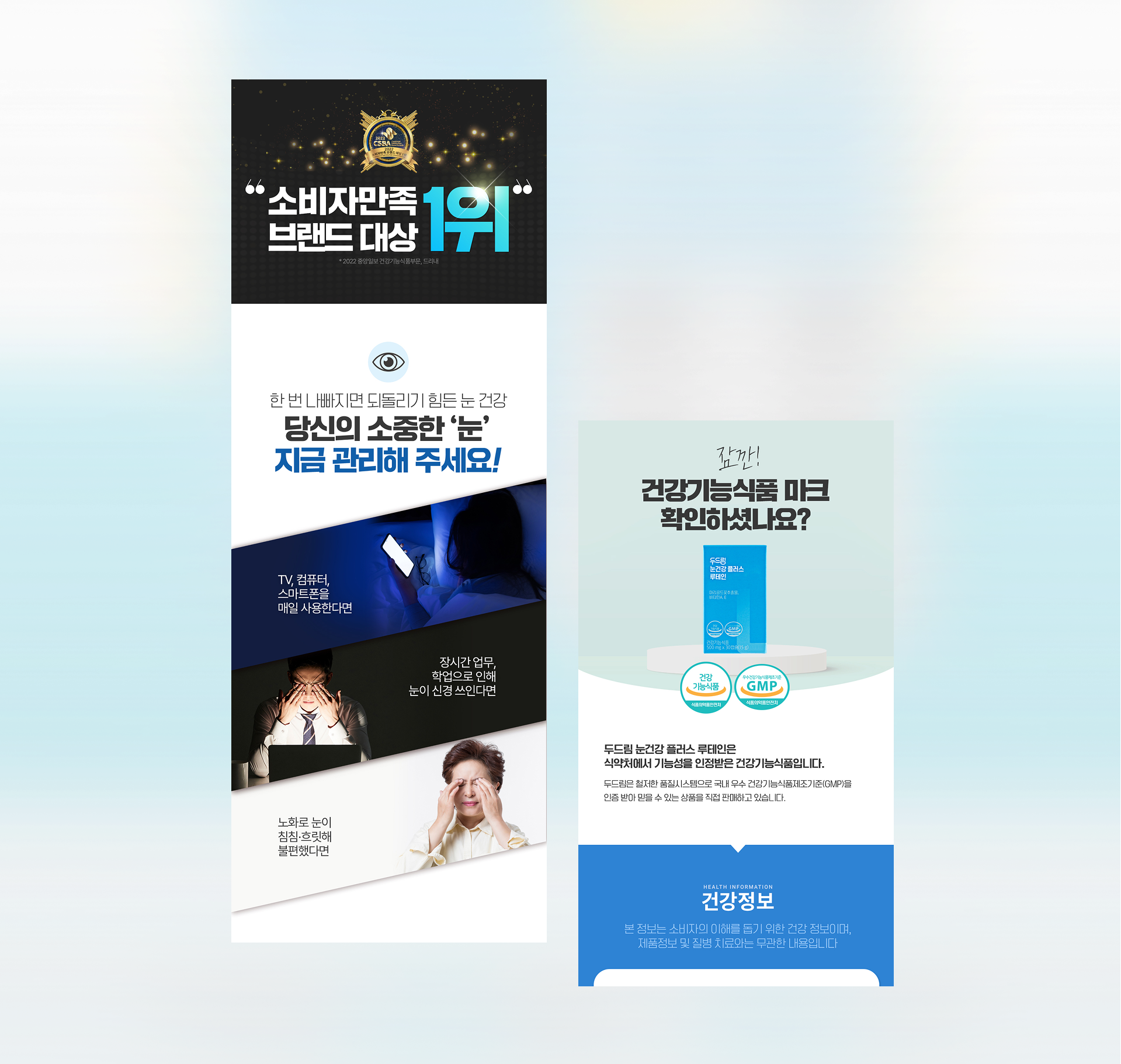 눈 건강의 ‘지금’을 강조하며, 신뢰와 경고를 균형 있게 담아낸 예방 중심 디자인