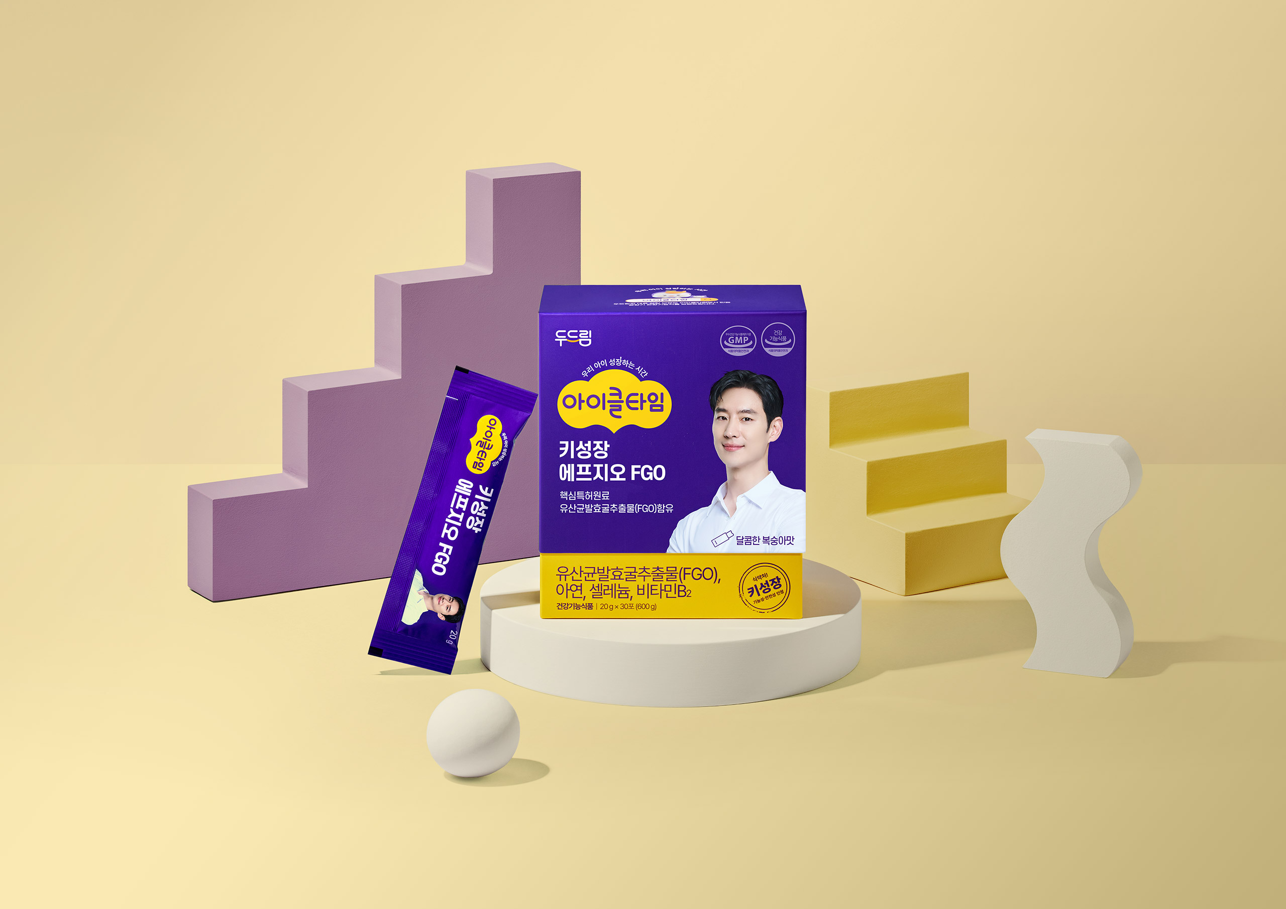 아이들의 무한한 성장 잠재력을 상징하는 퍼플과 옐로우의 보색 대비를 메인 컬러 시스템으로 채택하여 시각적 주목도를 극대화하고, 브랜드 고유의 역동적인 에너지를 패키지에 담아냈습니다. 신뢰감을 주는 모델 배치와 정갈한 타이포그래피를 통해 건강기능식품으로서의 전문성을 강조했으며, 핵심 성분 정보를 직관적인 레이아웃으로 설계해 구매 결정권을 가진 부모들에게 제품의 효능과 안전성을 명확히 전달합니다. '대한민국 대표 키 성장 브랜드'라는 마케팅 메시지에 걸맞게 프리미엄 톤앤매너를 유지하면서도, 아이들에게 친숙한 캐릭터와 그래픽 요소를 조화롭게 배치하여 브랜드 접근성을 높인 디자인 솔루션입니다.